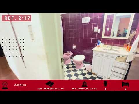<div>Cecilia Inmueble Ofrece:<br></div><div>IMPECABLE CASA EN COSQUÍN SOBRE RUTA 38 A 2 CUADRAS DEL CENTRO REF: 2117 <br></div><div><br></div><div>SOLO EFECTIVO) <br></div><div>La propiedad se encuentra sobre la avenida principal de la ciudad, está a 6 cuadras del centro, en la esquina tiene parada de colectivo.<br></div><div>Distancias: <br></div><div>- A 10 min de los pueblos colindantes<br></div><div>- A pocas cuadras de la estación de tren <br></div><div>- A 2 cuadras del centro de Cosquín <br></div><div>- A 5 min del rio Cosquín <br></div><div>Comodidades<br></div><div>* 3 dormitorios<br></div><div>* Living en desnivel<br></div><div>* Hogar <br></div><div>* Cocina <br></div><div>* 1 Baño amplio<br></div><div>* Lavadero<br></div><div>* Garaje cubierto para un auto <br></div><div>* Asador interno<br></div><div>Tipo de Construcción: está construida 100% con ladrillos y loza, tiene tejas, cuenta con importante seguridad en todas sus aberturas (rejas reforzadas) y adelante doble rejas de ingreso.<br></div><div>Superficie del terreno: 191.7 m²<br></div><div>FRENTE POR FONDO: 80.5 x 9.5 mts <br></div><div>Superficie cubierta: 115 mts 2<br></div><div>Antigüedad: 35 años aprox <br></div><div>Servicios que cuenta: luz, agua, internet, recolección de residuos y gas envasado. Calle de asfalto sobre av. principal. <br></div><div><br></div><div><br></div><div><br></div><div><br></div><div><br></div><br> <br> <br> <br>